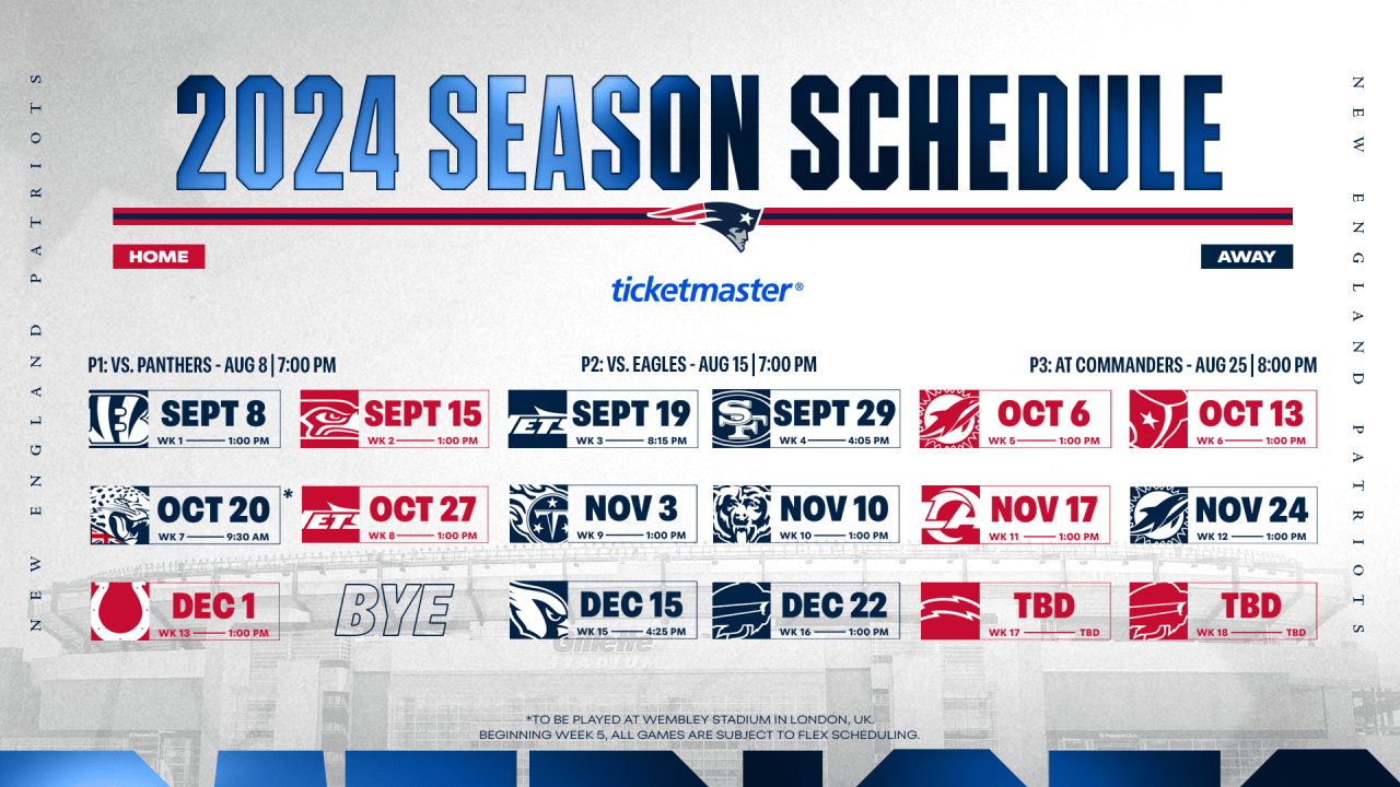 Printable 2024 New England Patriots Schedule; Matchups and TV